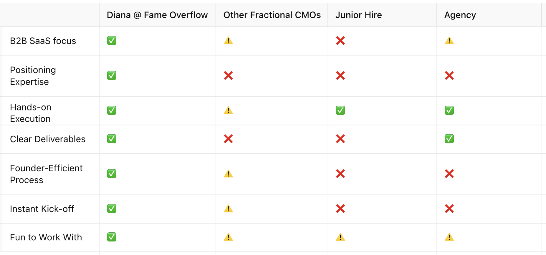 I've seen dozens of SaaS cases - my offer covers all you need to succeed, and none of the stuff you don't.