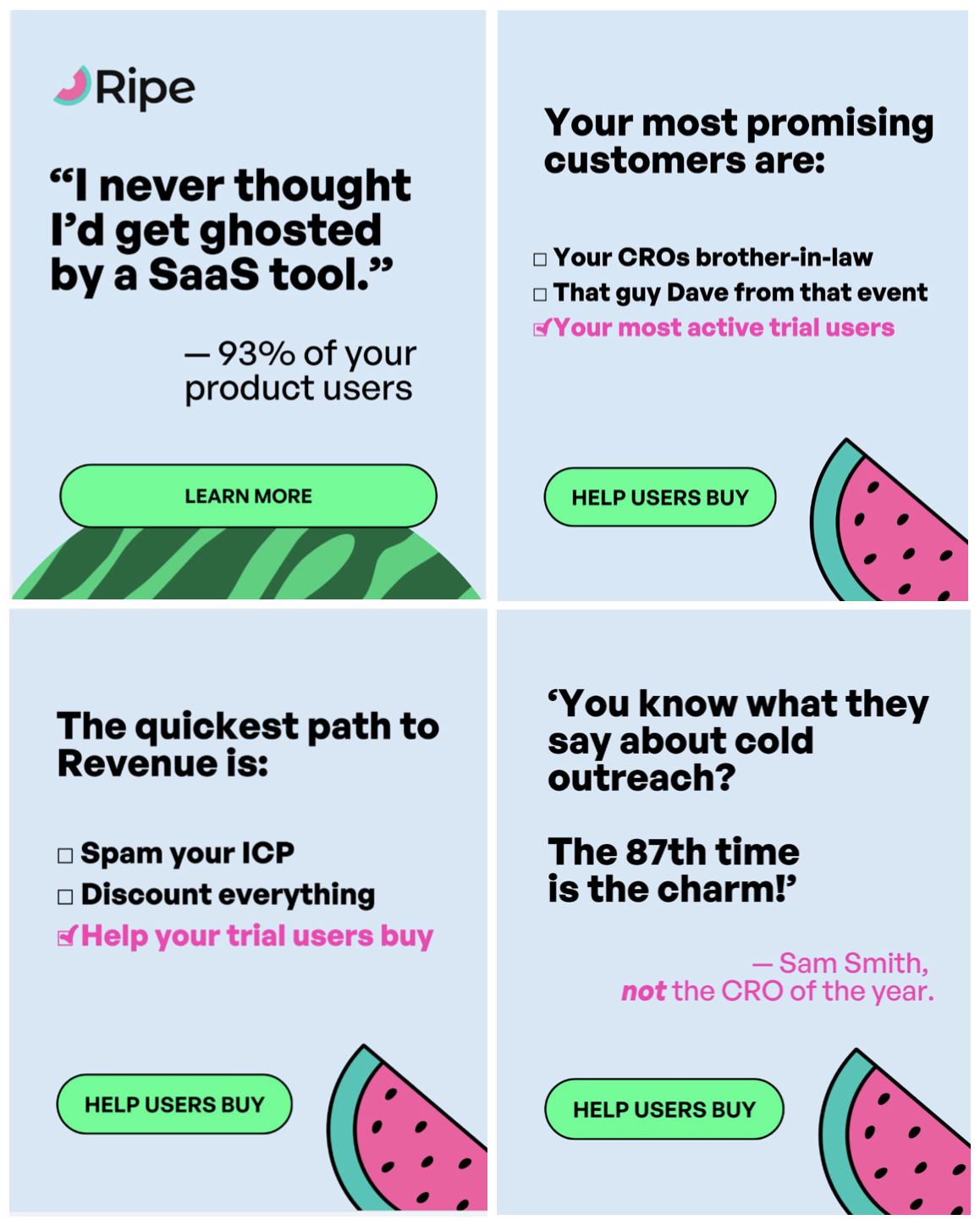 Worse, Ripe was selling to Sales and Marketing teams – one of the hardest audiences in SaaS.